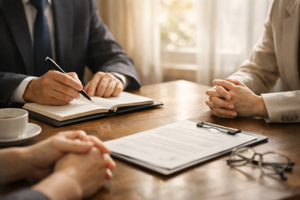 「公証人と何を話せばいいのか分からない」という不安も必要ありません。役場との事前の打ち合わせや細かな文言調整は、すべて弊所が窓口となって進めます。